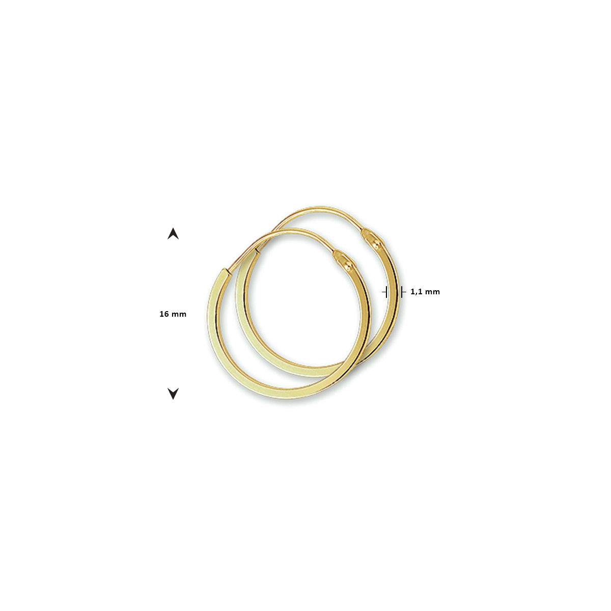 Geelgouden oorringen met een vierkante buis en een scharnier-sluiting.