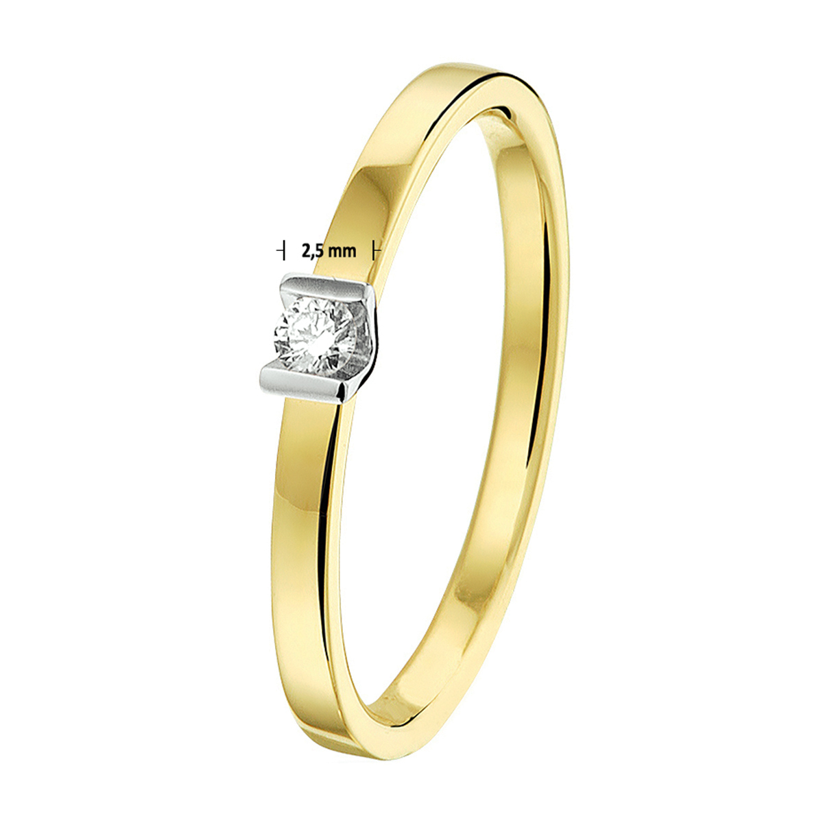 ring diamant 0.05ct h si 14K bicolor goud geel/wit