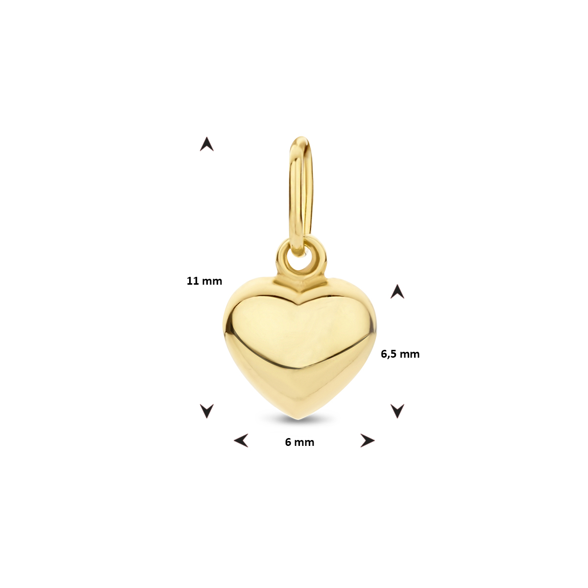 9k Geel kleurighanger uitgevoerd in de vorm van een hartje.