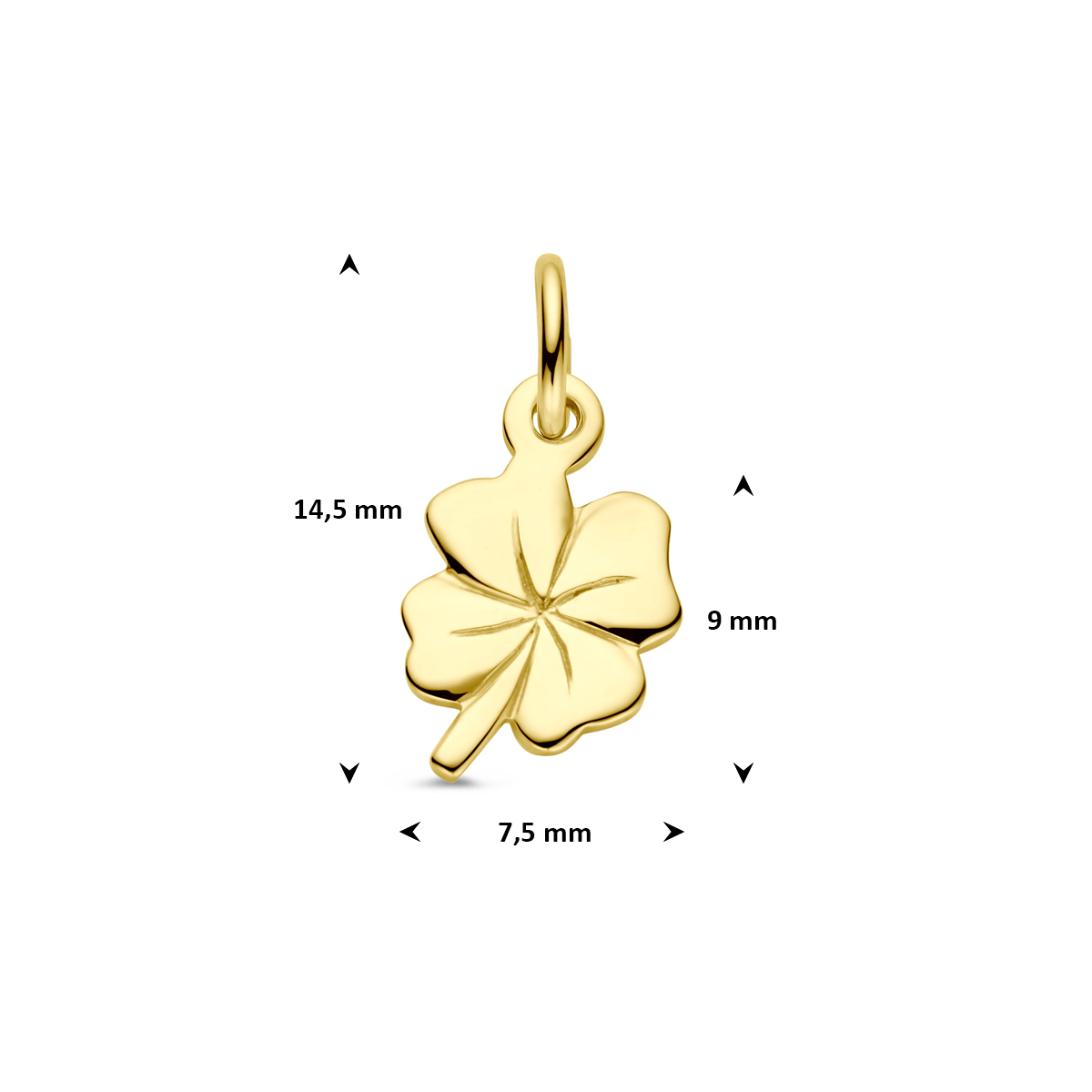9k Geelkleurig klaver hanger uitgevoerd met een stevig hangoog.