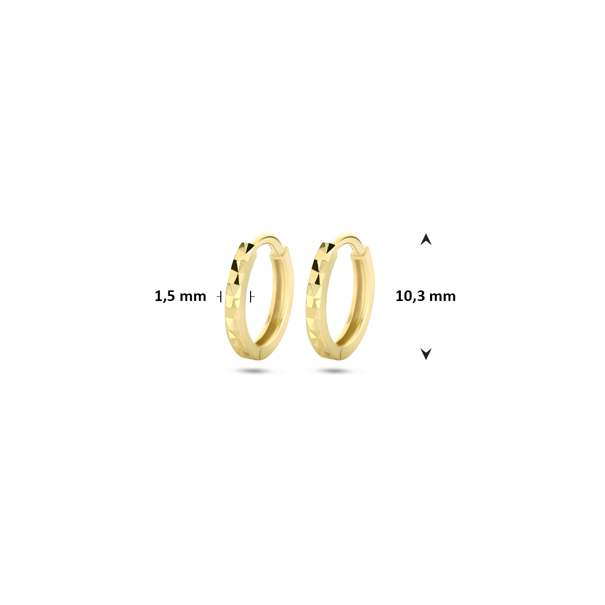 9k Geelkleurige klapoorringen met een diameter van 10.3mm.