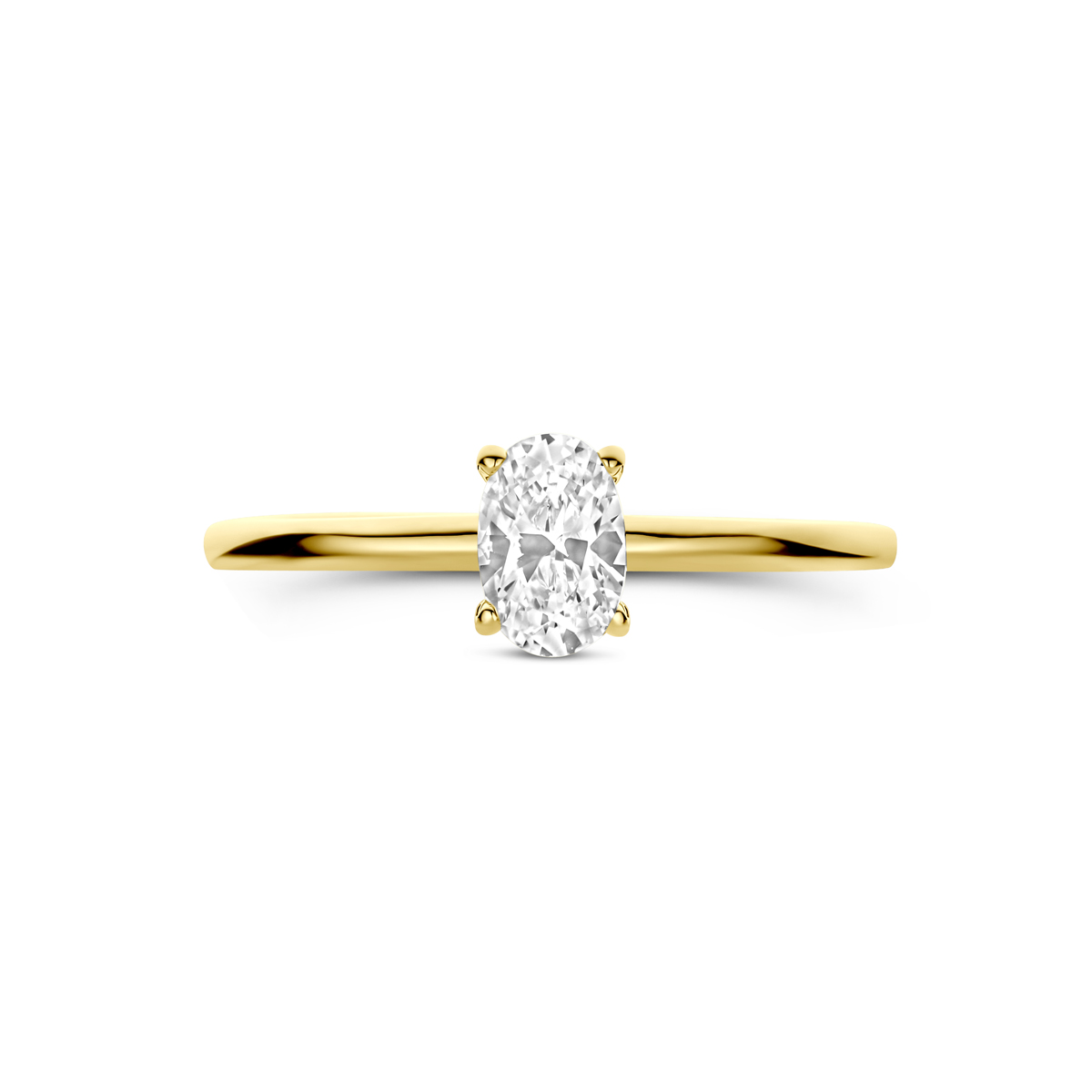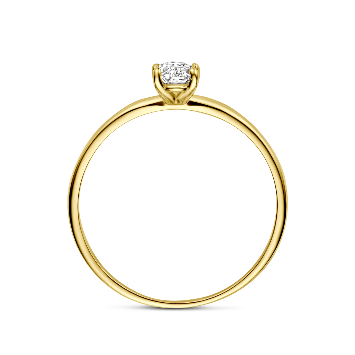 9kGeelkleurige ring uitgevoerd met zirkonia. De steen heeft een afmeting van 6x4mm.