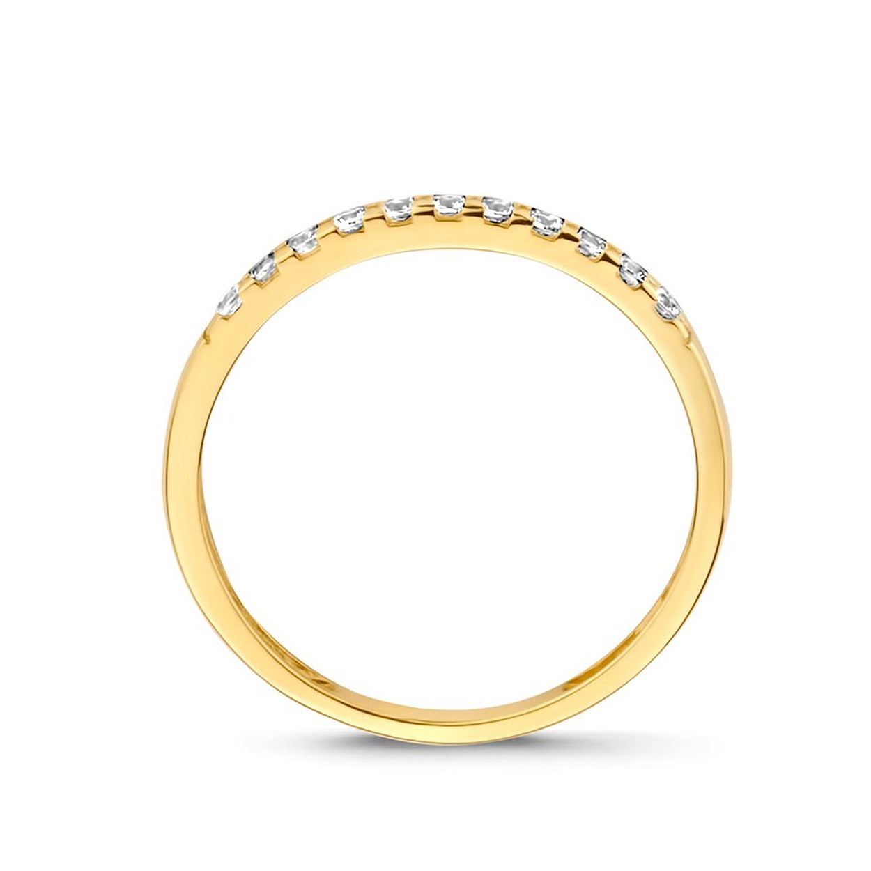 14k Geelgouden aanschuifring uitgevoerd met een schitterende zirkonia rij. De ring heeft een breedte van 1.6mm.