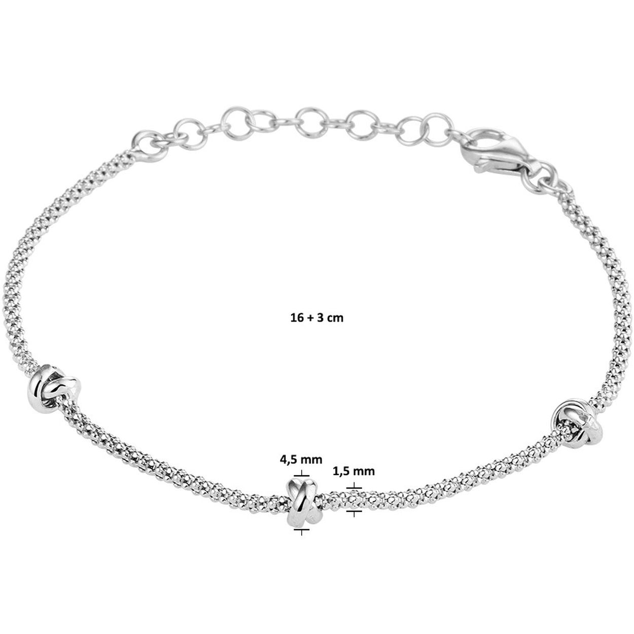 Gerhodineerd 925 zilveren armband uitgevoerd met poli afgewerkte knopen en een stevige karabijn sluiting. De armband heeft een draaglengte van 16cm met een extensie van 3cm.