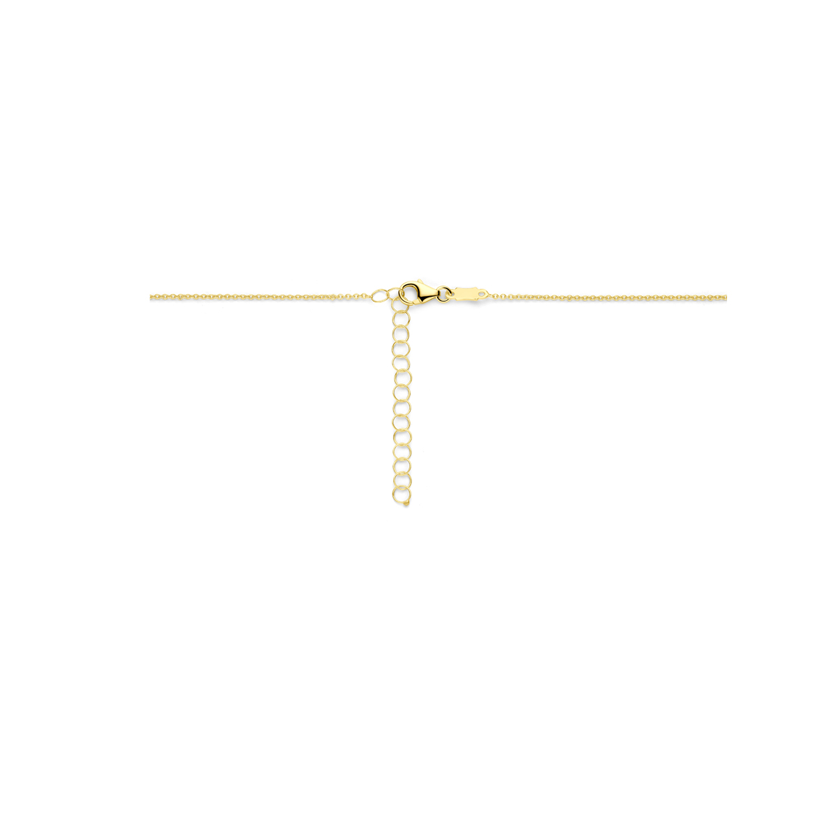 14k Geelgouden collier uitgevoerd met een hartje en diamant. Het collier heeft een draaglengte van 40cm met 4cm extensie. Het totale diamantgewicht is 0.02ct.