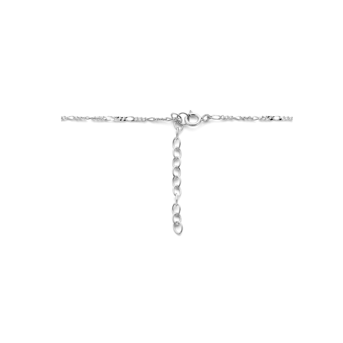 Gerhodineerd 925 zilveren figaro collier met een infinity hanger. Het collier heeft een draaglengte van 41cm en een extensie van 4cm. De schakelbreedte is 1.6mm.