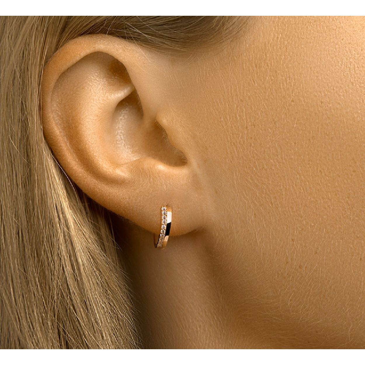 14k Rosegouden klapoorringen uitgevoerd met een schitterende zirkonia rij. De oorringen hebben een afmeting van 12x2.5mm.