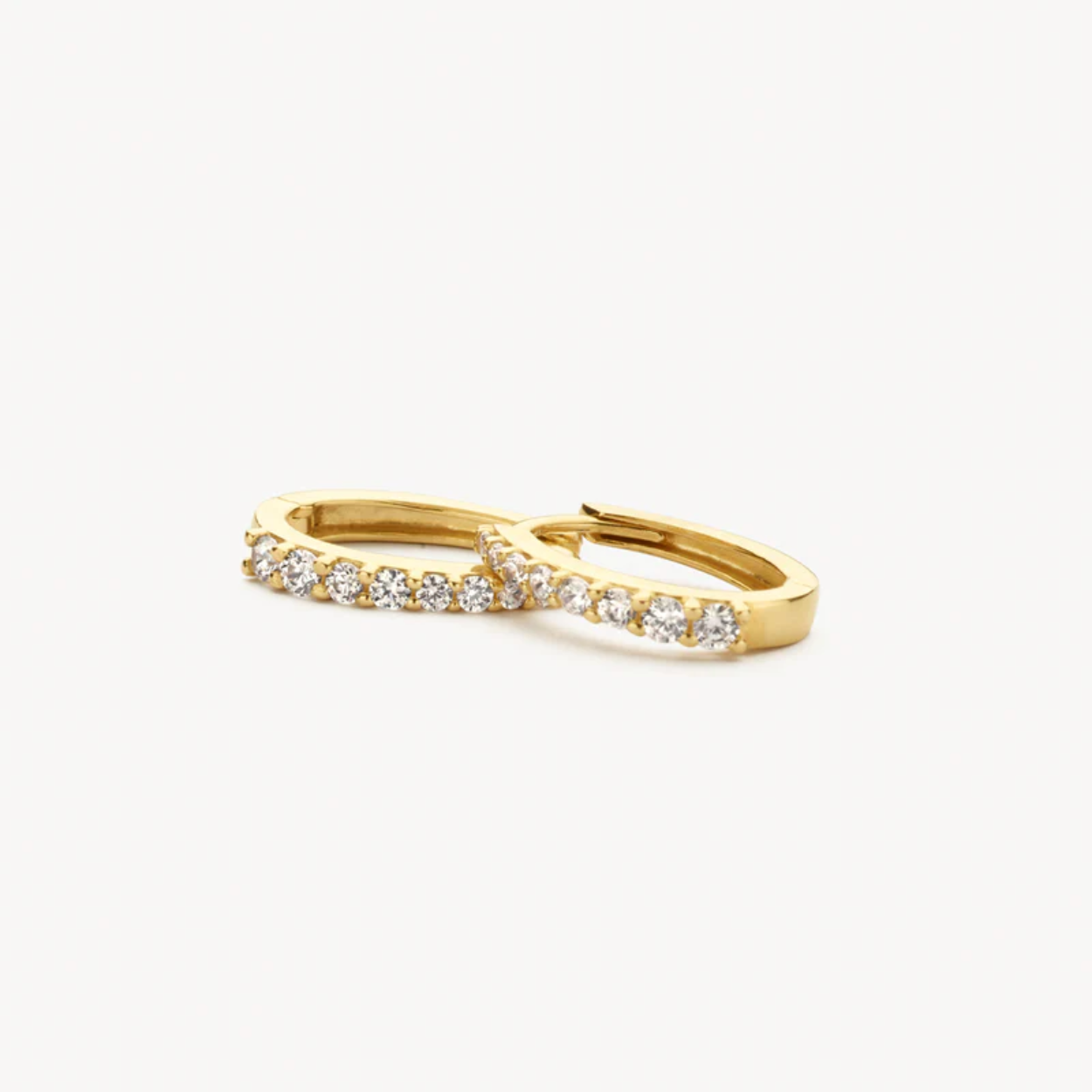 Schitterende zirkonia’s in pavé-zetting sieren deze 14k geelgouden oorringen. Ze hebben een lengte van 13,7 mm en zijn voorzien van een kliksluiting. De oorringen zijn mooi op zichzelf, maar ook fraai te combineren met andere sieraden met zirkonia uit onze collectie.