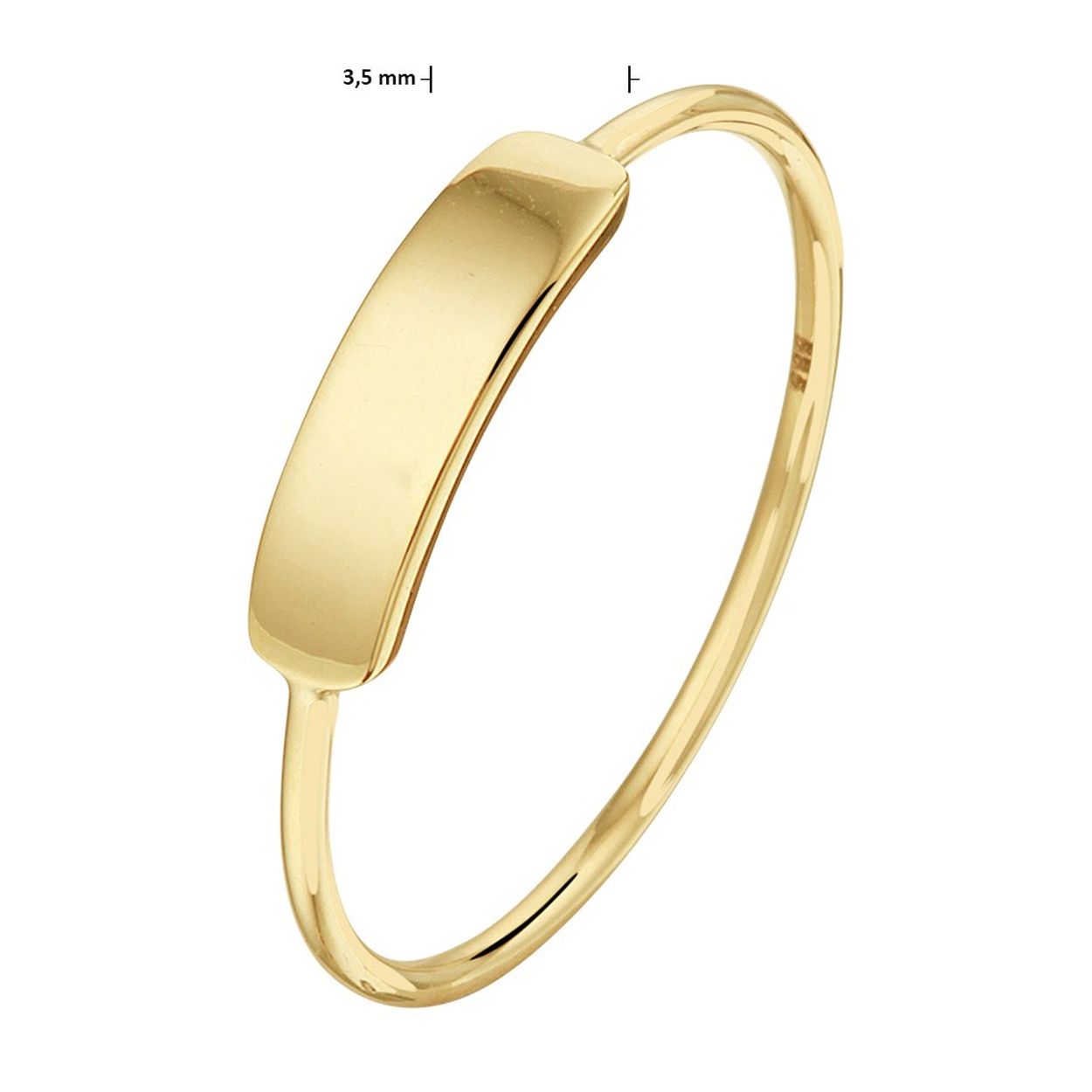 14k Geelgouden ring uitgevoerd met een graveerplaatje. De ring heeft een breedte van 3.5mm.