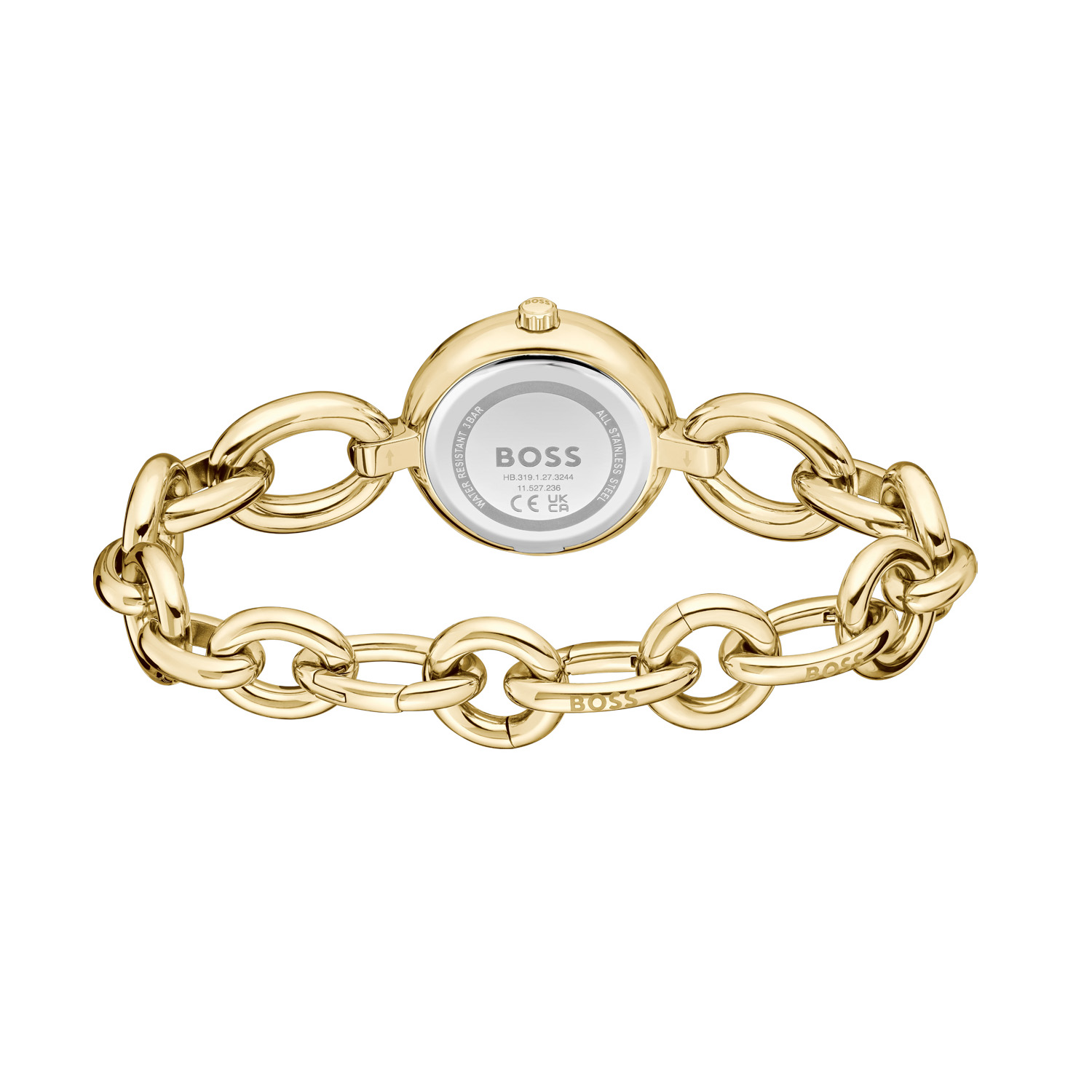 Dit BOSS horloge uit de LIVE serie met artikelnr: HB1502792 heeft een chique uitstraling. Zeer geschikt voor de moderne stijlvolle vrouw van nu. Het dameshorloge valt op door zijn stalen goudkleurige horlogekast met bolle bezel en een zilverwitte sunray wijzerplaat met 4 kristallen als uursaanduiding. De fijne wijzers tikken sierlijk in het rond. Aan de kast zit een stalen goudkleurige ovalen open schakelband met een druksluiting. Het horloge heeft een doorsnee van 28mm een mineraalglas en is 3ATM.