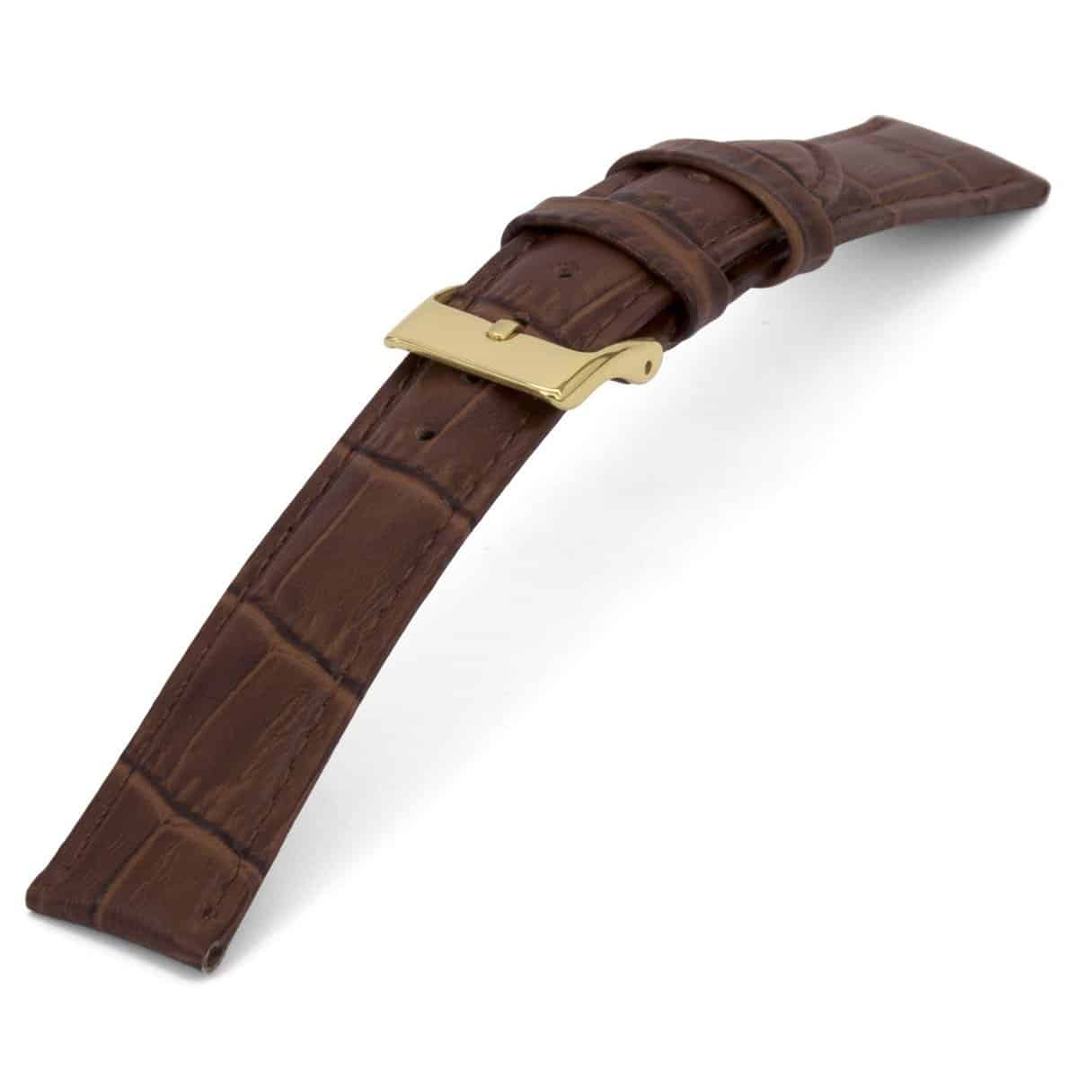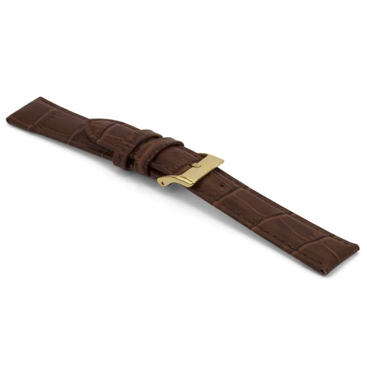 Bruin lederen horlogeband met goudkleurig aluminium gesp.