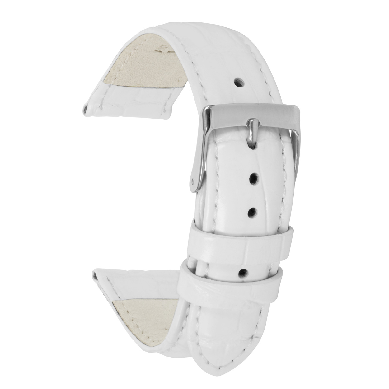 Wit lederen horlogeband met zilverkleurig edelstalen gesp.