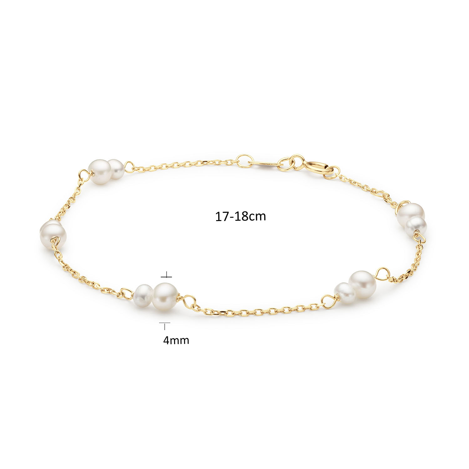 I love pearls!  Deze armband is voorzien van tien echte zoetwaterparels. De verschillende formaten van de parels zorgt voor een speels effect.