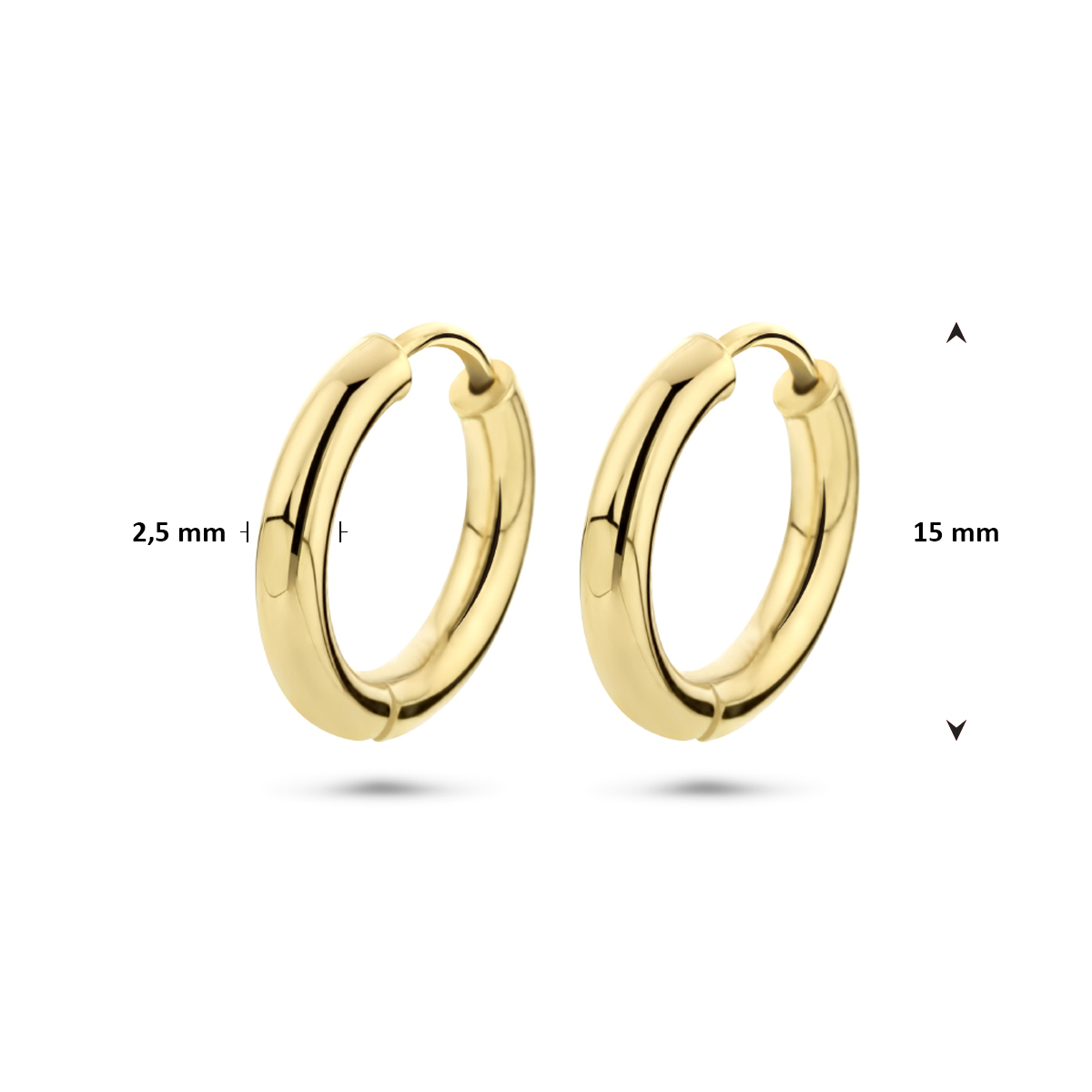 Geelgouden klapoorringen met een ronde buis.
