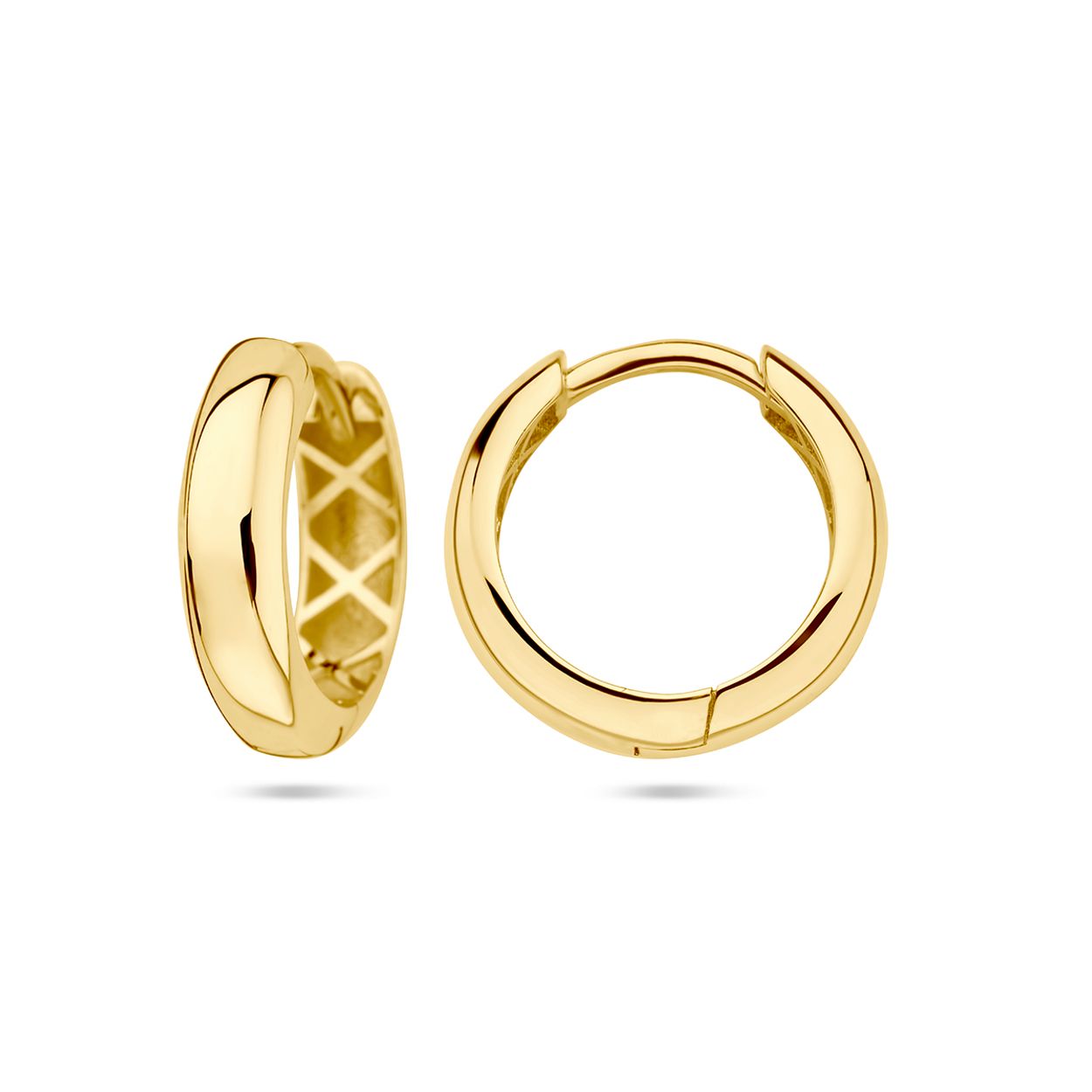 14k Geelgouden klapoorringen. De oorringen hebben een diameter van 14.5mm.