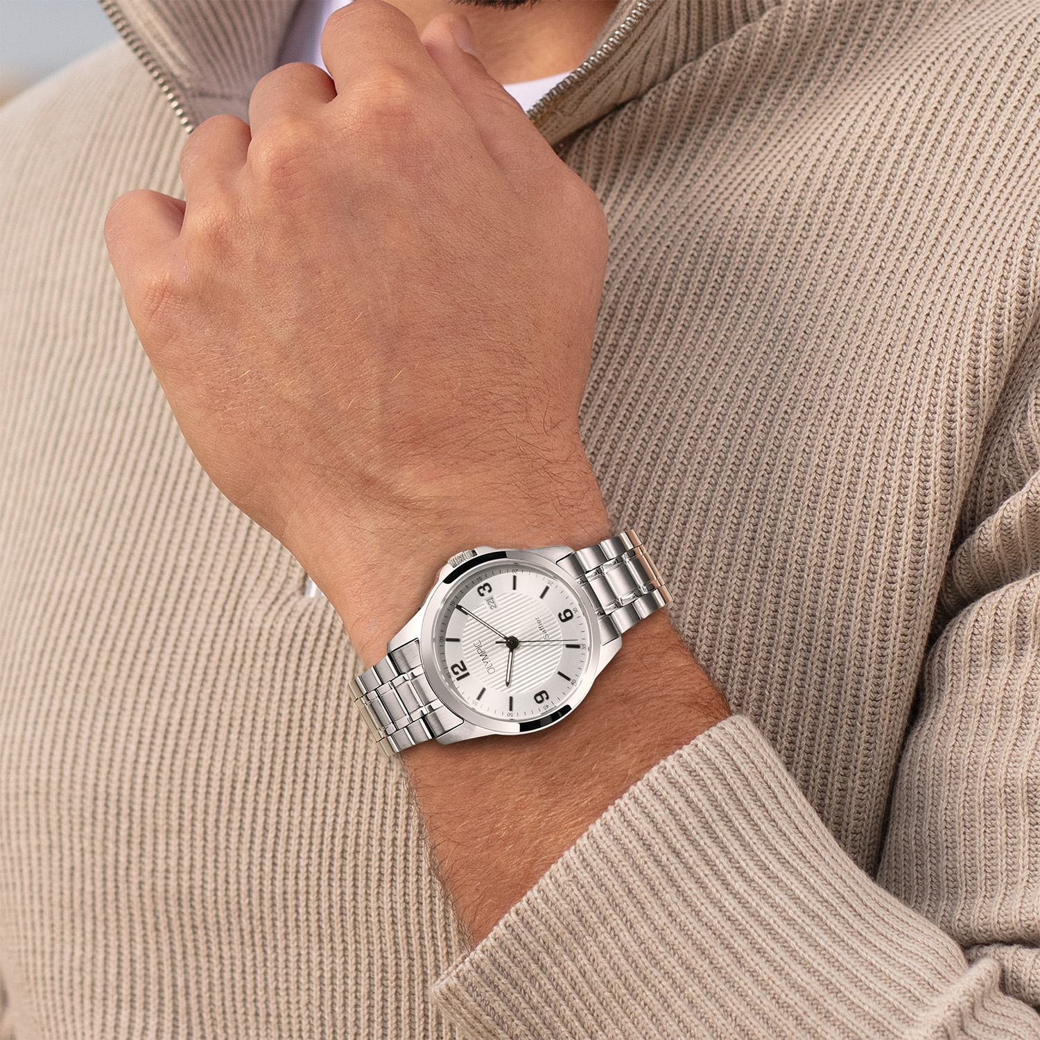 Dit is een herenhorloge van het merk Olympic uit de serie Thomas. Met een horlogekast gemaakt van staal en een zilverkleurige band van staal.