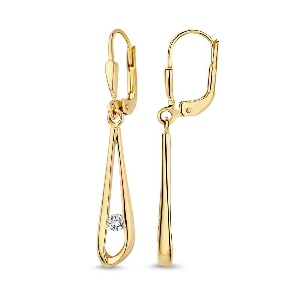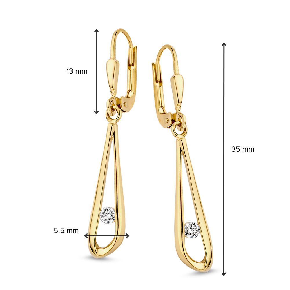 Geelgouden oorhaken met zirkonia.