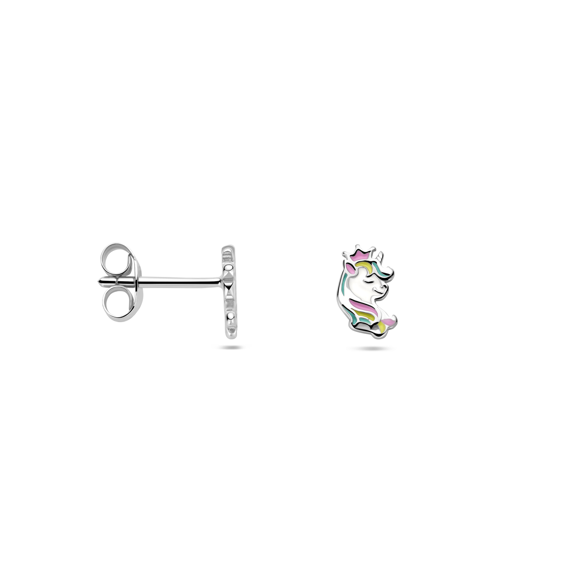 Gerhodineerd 925 zilveren oorknoppen uitgevoerd in de vorm van een eenhoorn. De oorknoppen hebben een afmeting van 8x5mm.