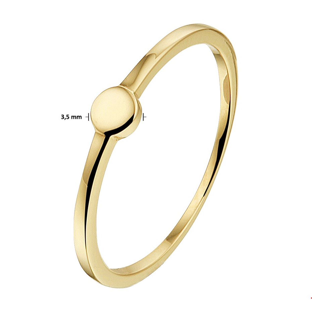 Beschrijving: Trendy geelgouden ring met een rondje van 3.5mm. Fijne sieraden zijn niet meer weg te denken uit het straatbeeld. Glam up your outfit! Door het simplistische design is deze ring gemakkelijk te combineren met andere gouden rondjes sieraden.