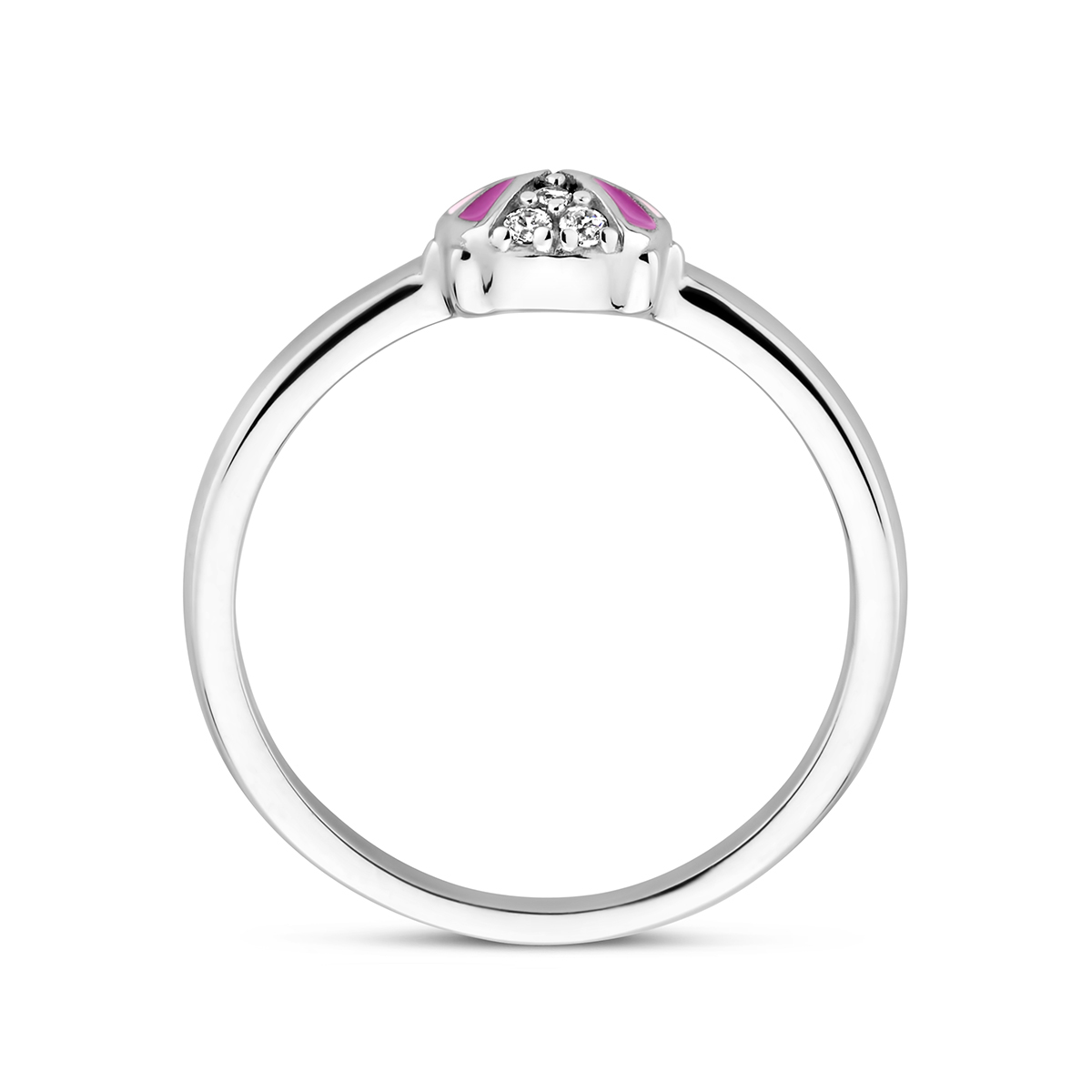 Gerhodineerd 925 zilveren ring uitgevoerd met lieveheersbeestje en zirkonia. De ring heeft een afmeting van 6.5x5.5mm.