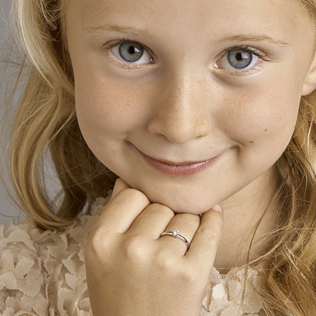 Gerhodineerd zilveren ring met zirkonia van 3mm.