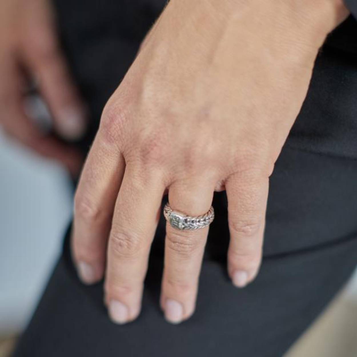Smalle, fijn gevlochten ring. De ring is met de hand gemaakt van sterling zilver. Deze ring past perfect bij een van onze nieuwere dunne armbanden uit de Zipp collection collectie.