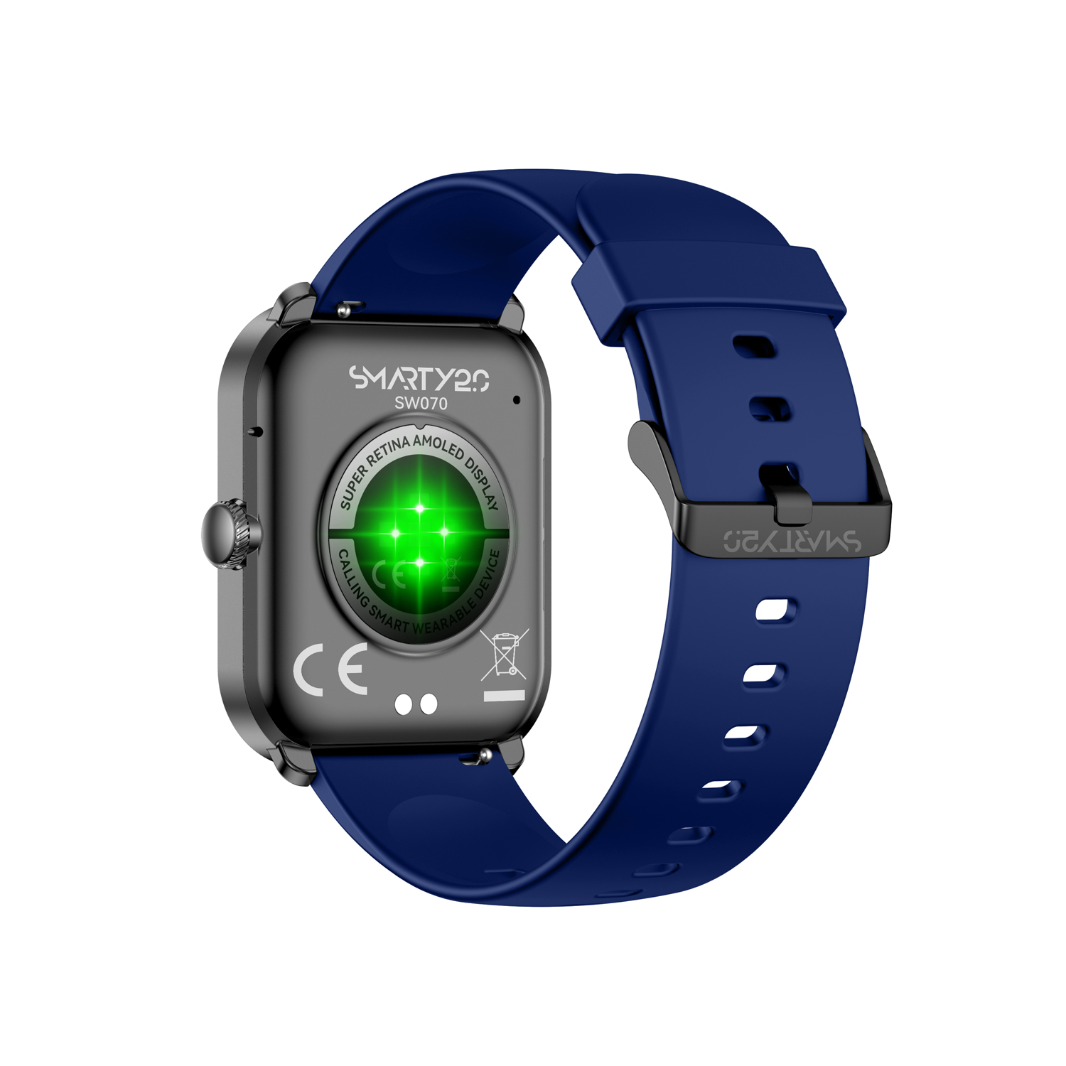 Dit Smarty Smartwatch horloge met nr: SW070C is een stap in de toekomst. Door zijn Amoled scherm is het beeld vele malen scherper en intenser. De zwarte kast is gemaakt van ABS kunststof met een gehard glas. Aan de kast zit een blauwe siliconen band met een gespsluiting. Het rechthoekige horloge heeft een afmeting van 46,5x40,5mm en is spatwaterdicht. Bij dit horloge krijg je een zwarte siliconen band extra. Deze smartwatch is sportief, stijlvol, maar zeker gebruiksvriendelijk. Om door apps, berichten en tekst te bladeren hoeft je alleen maar op het glas te tikken of de knop te gebruiken. Tevens heeft het een AI voice functie.