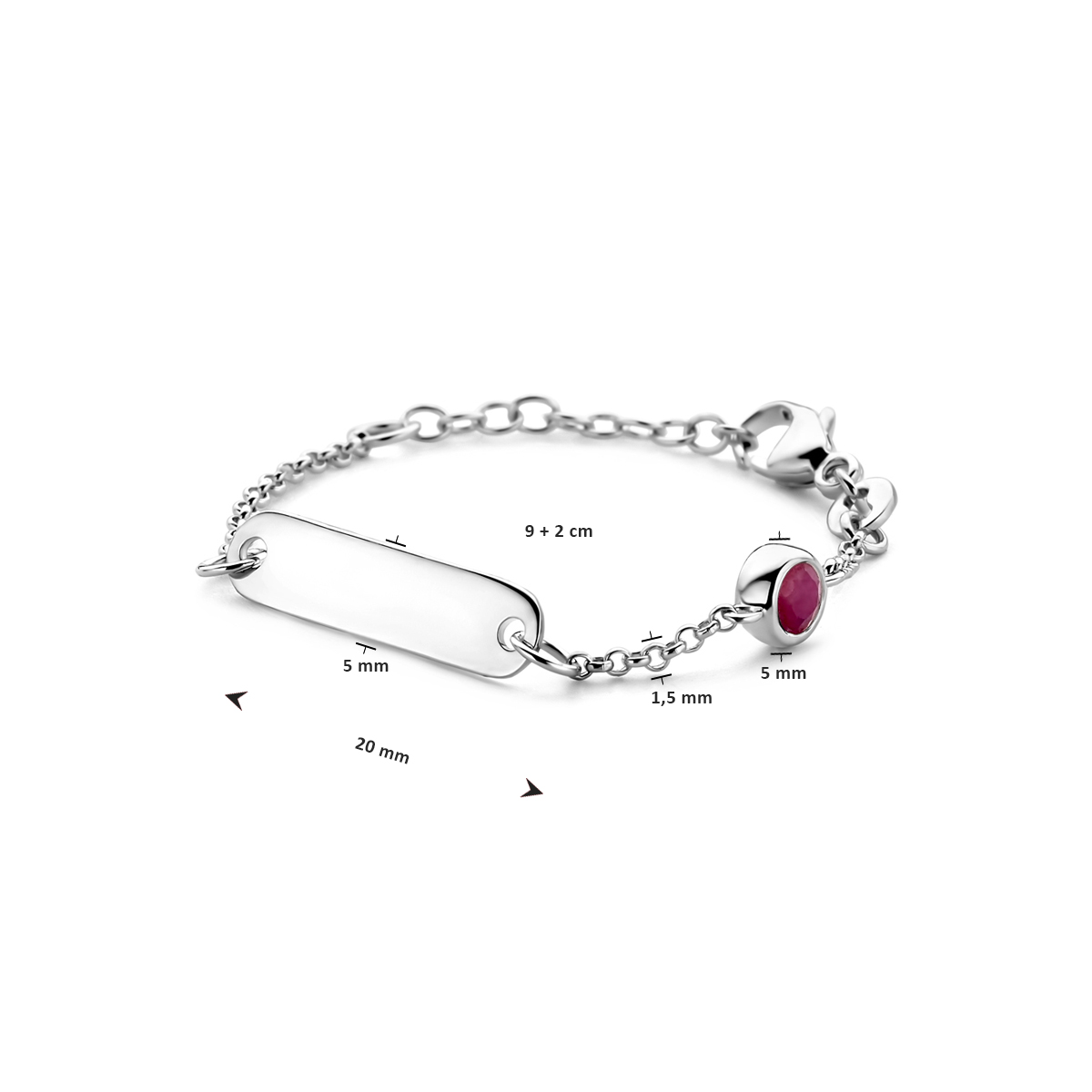 Gerhodineerd 925 zilveren graveerarmband uitgevoerd met een geboortesteen. De armband heeft een draaglengte van 9cm met 2cm extensie. De schakelbreedte is 1.5mm. De graveerplaat heeft een afmeting van 5x20mm en een dikte van 0.6mm.