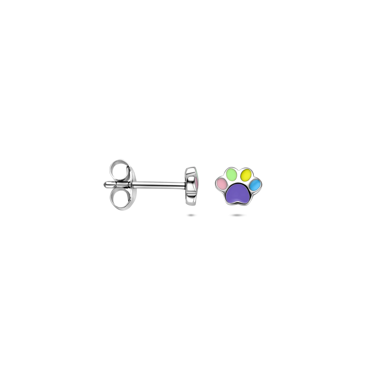 Gerhodineerd 925 zilveren oorknoppen uitgevoerd met emaille hondenpoot. De oorknoppen hebben een afmeting van 4.5x5.5mm.
