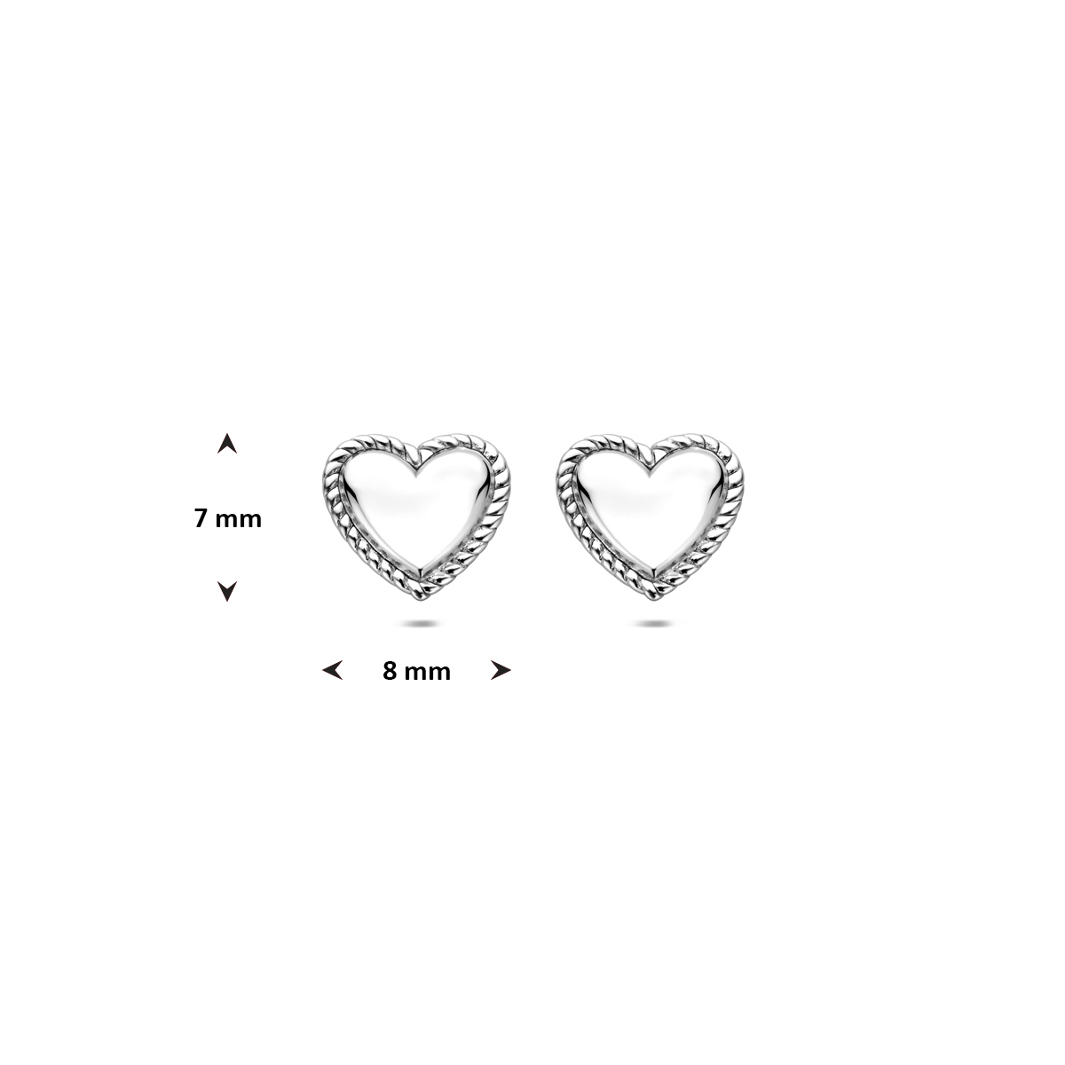 Gerhodineerd 925 zilveren oorknoppen uitgevoerd in de vorm van een hartje.De oorknoppen hebben een afmeting van 7x8mm.