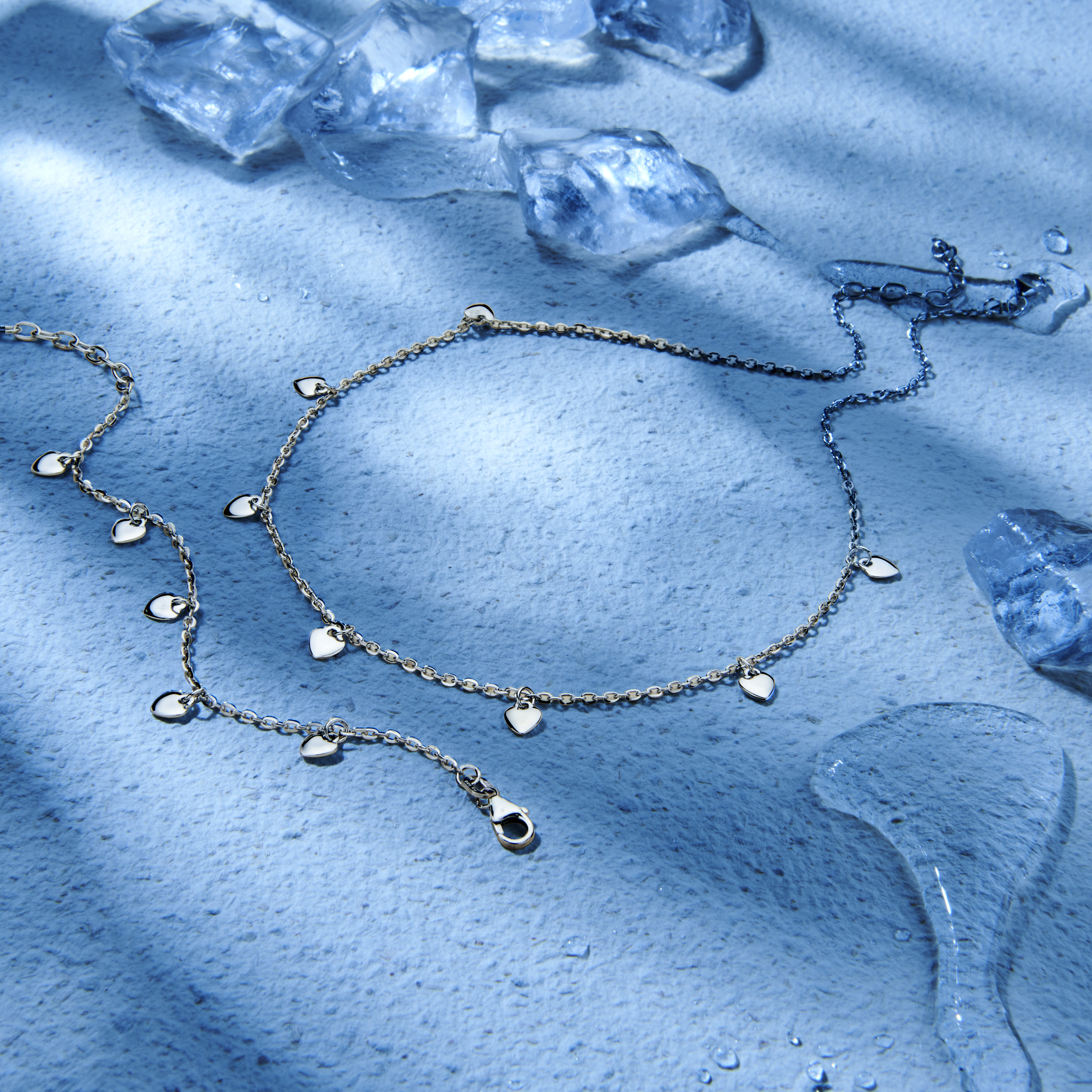 Gerhodineerd 925 zilveren collier met hartjes. Het collier heeft een draaglengte van 36cm met een extensie van 4cm. De schakelbreedte is 1.5mm. Uitgevoerd met een karabijn sluiting.