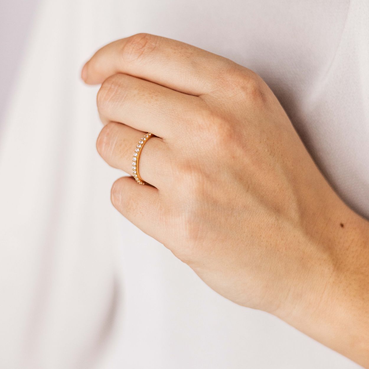 Ring / sider gemaakt van Geel Goud Verguld Zilver. De ringmaat is 52 en de ringbreedte is 2 mm.