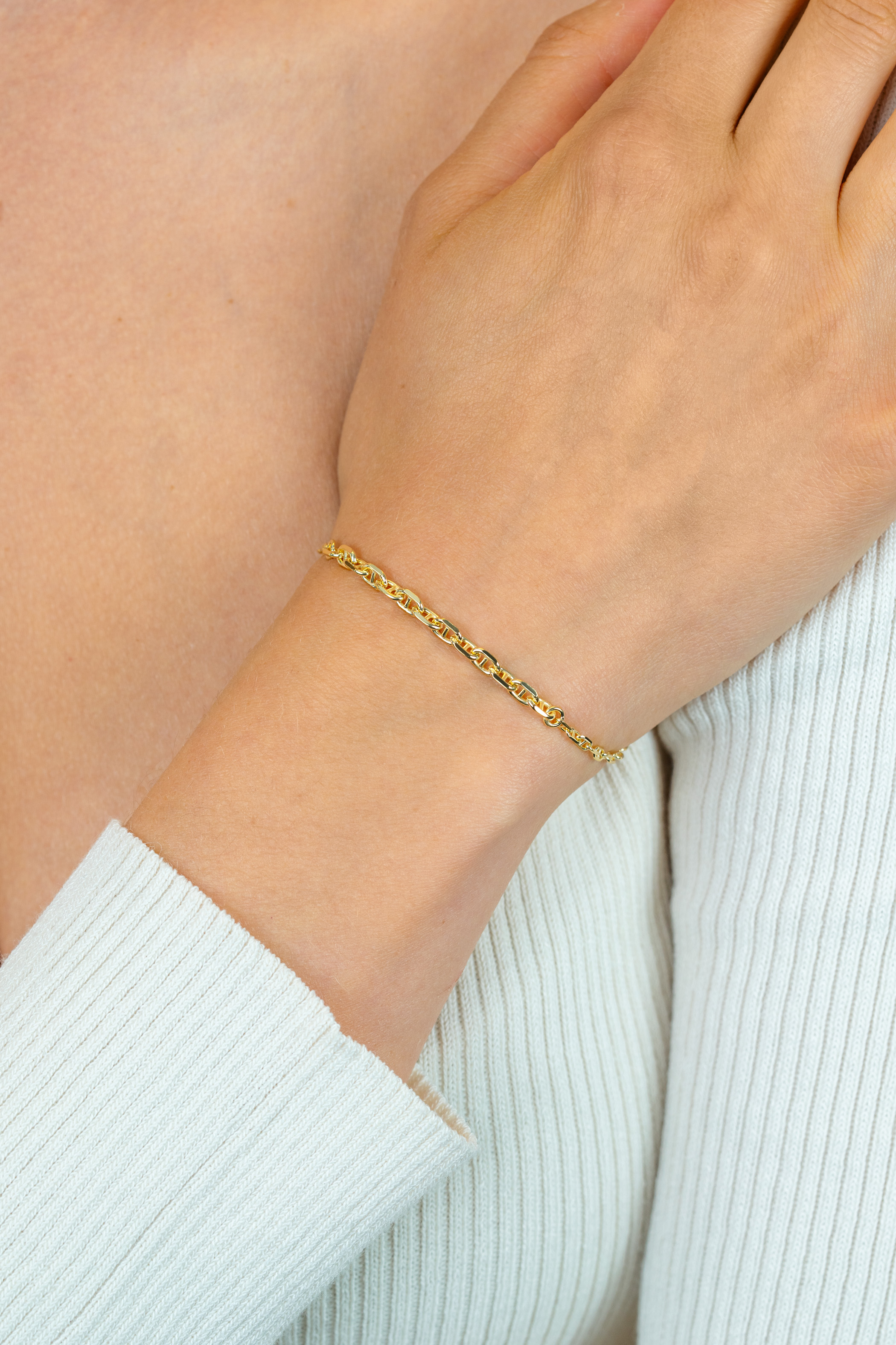 ZINZI gold plated zilveren schakel armband met aflopende marine-schakels (3,8mm breed). Voorzien van een verlengkettinkje, verstelbaar van 17 tot 20 cm voor de perfecte pasvorm. De armband is vervaardigd van eerste gehalte zilver (925) en extra geel verguld.