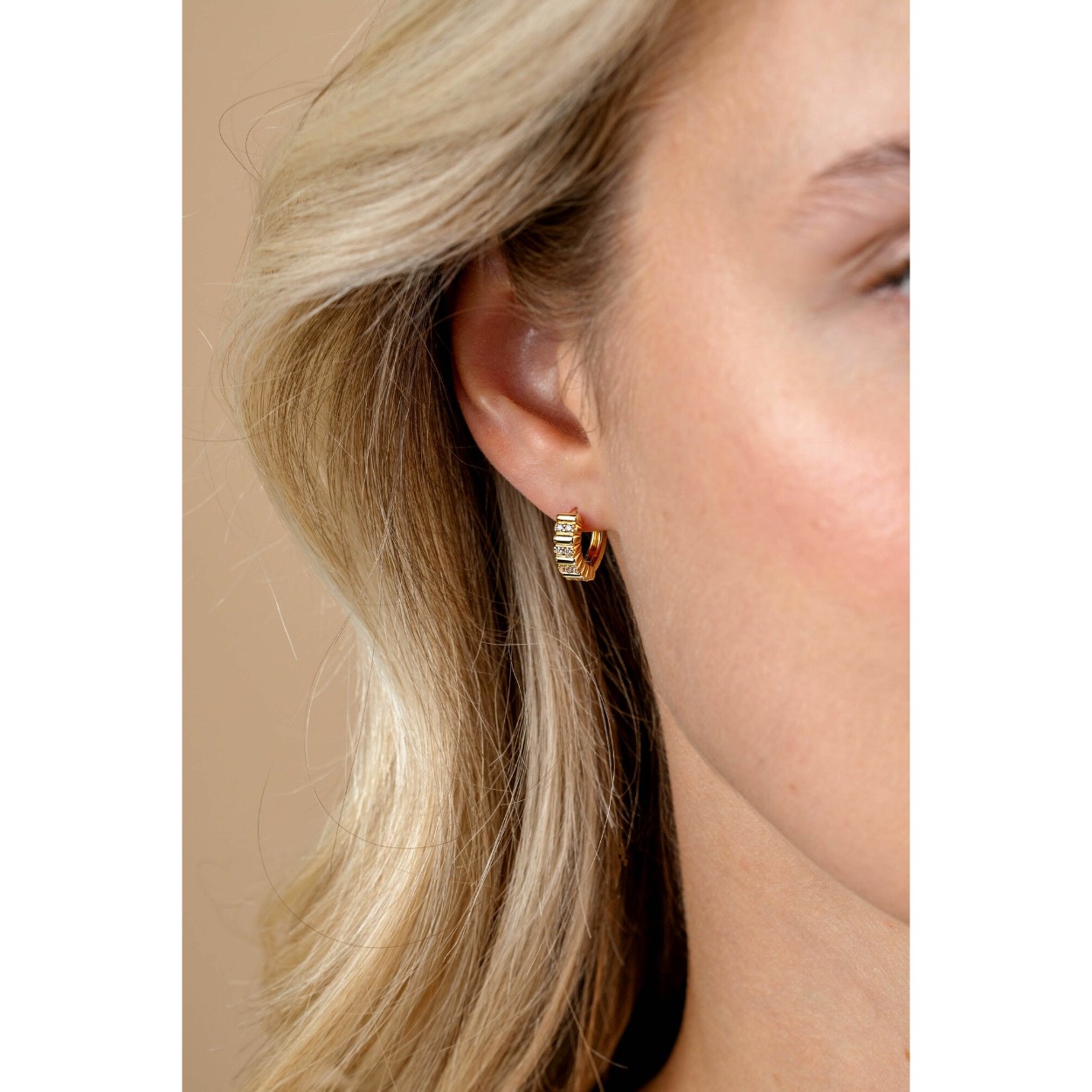 ZINZI gold plated zilveren oorringen (13x4mm) met gladde ovale elementen en afgewisseld met chatonzettingen van twee witte zirkonia's. Met luxe en gemakkelijke klapsluiting. Maak je look compleet met bijpassende ring en armband!Vervaardigd van eerste gehalte zilver (925) en extra geel verguld.
